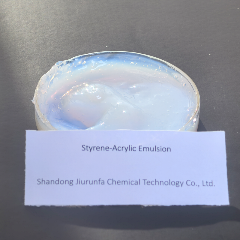 In terms of fundamental properties, Jiurunfa's styrene acrylic emulsion presents as a uniform milky-white liquid free of visible mechanical impurities. It exhibits moderate viscosity and excellent flowability, readily blending with water and various additives (such as thickeners and defoamers). It demonstrates strong storage stability, remaining stable for extended periods under sealed conditions at room temperature without separation or caking. Its core functional advantages are concentrated in three areas: ① Strong adhesion and film-forming properties: Upon drying, the emulsion forms a continuous, dense film that tightly bonds to diverse substrates including cement, wood, metal, and paper. It resists cracking or peeling due to thermal expansion and contraction of substrates, making it particularly suitable for coating applications demanding high adhesion.